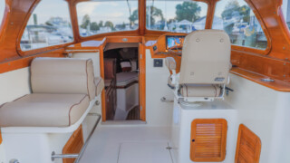 The upgraded Hinckley JetStick 3® provides seamless integrated control of both the bow thruster and the jet drive. Thisprovides full JetStick maneuverability for docking and navigating in crowded harbors and moorings.