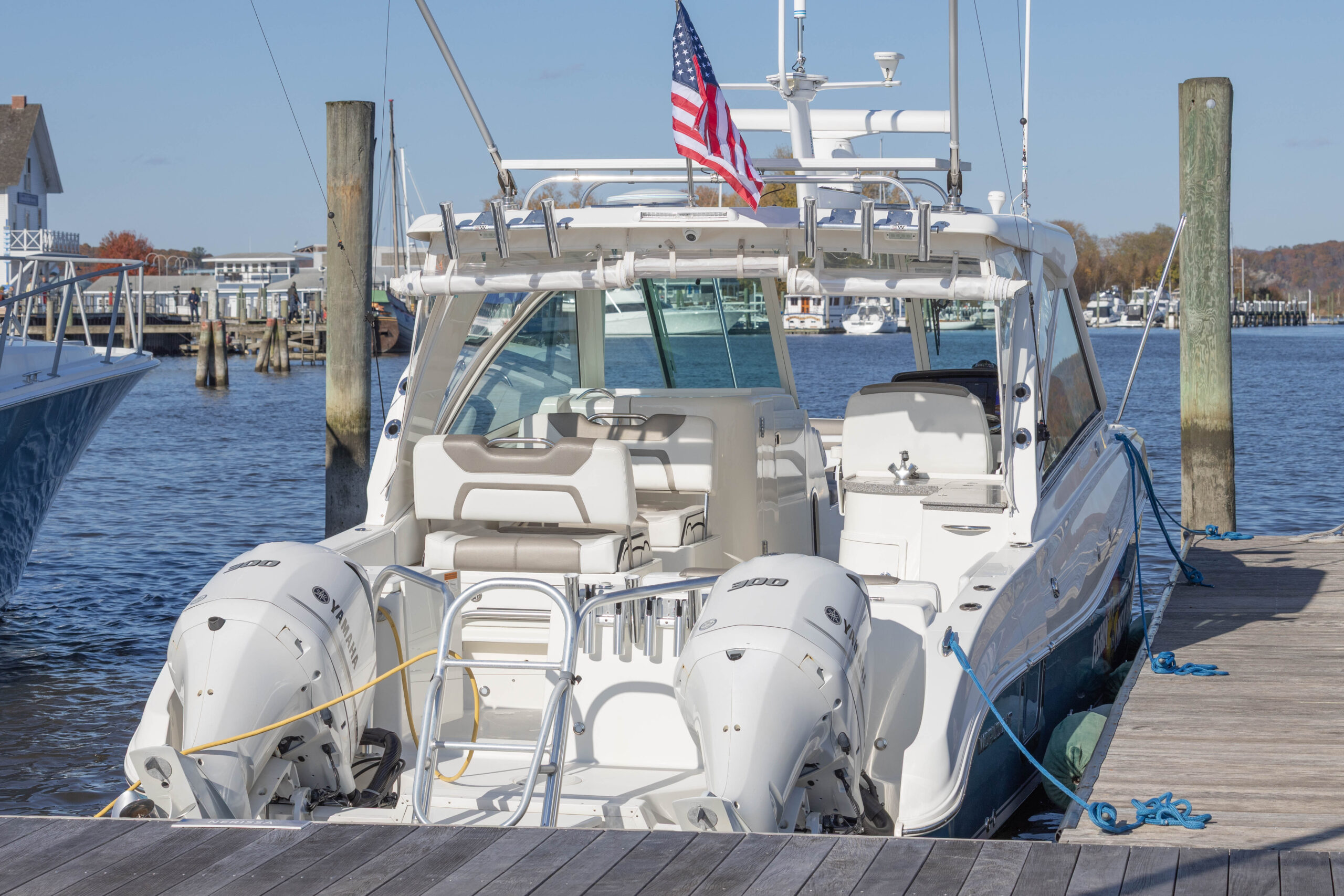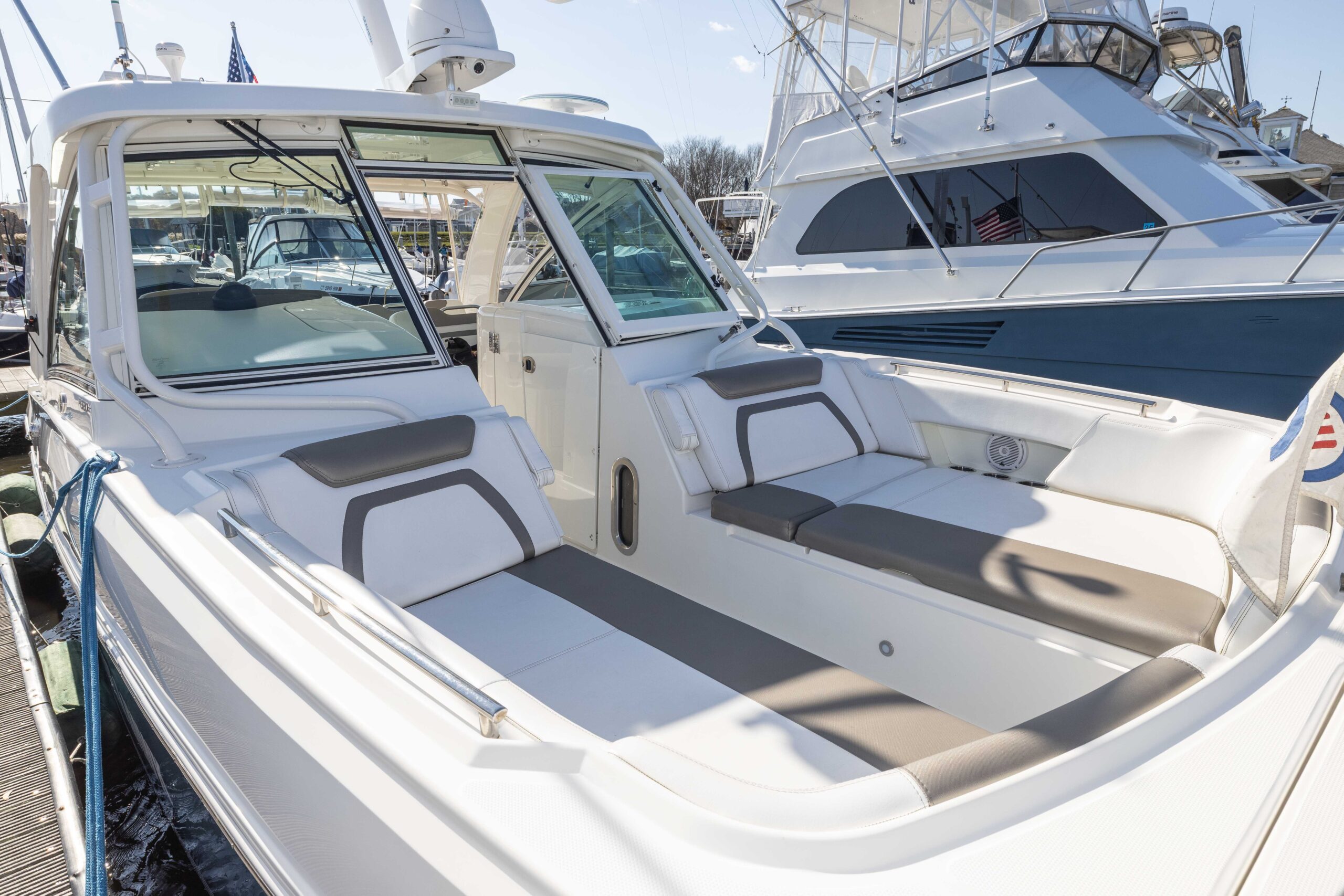 Unlike many Florida boats, FISHIN’ LIKE A HAWK has been lightly used during the all-too-short New England summers,with only 295 engine hours. This one-owner boat has been professionally maintained, in one of Connecticut’s finest yards.