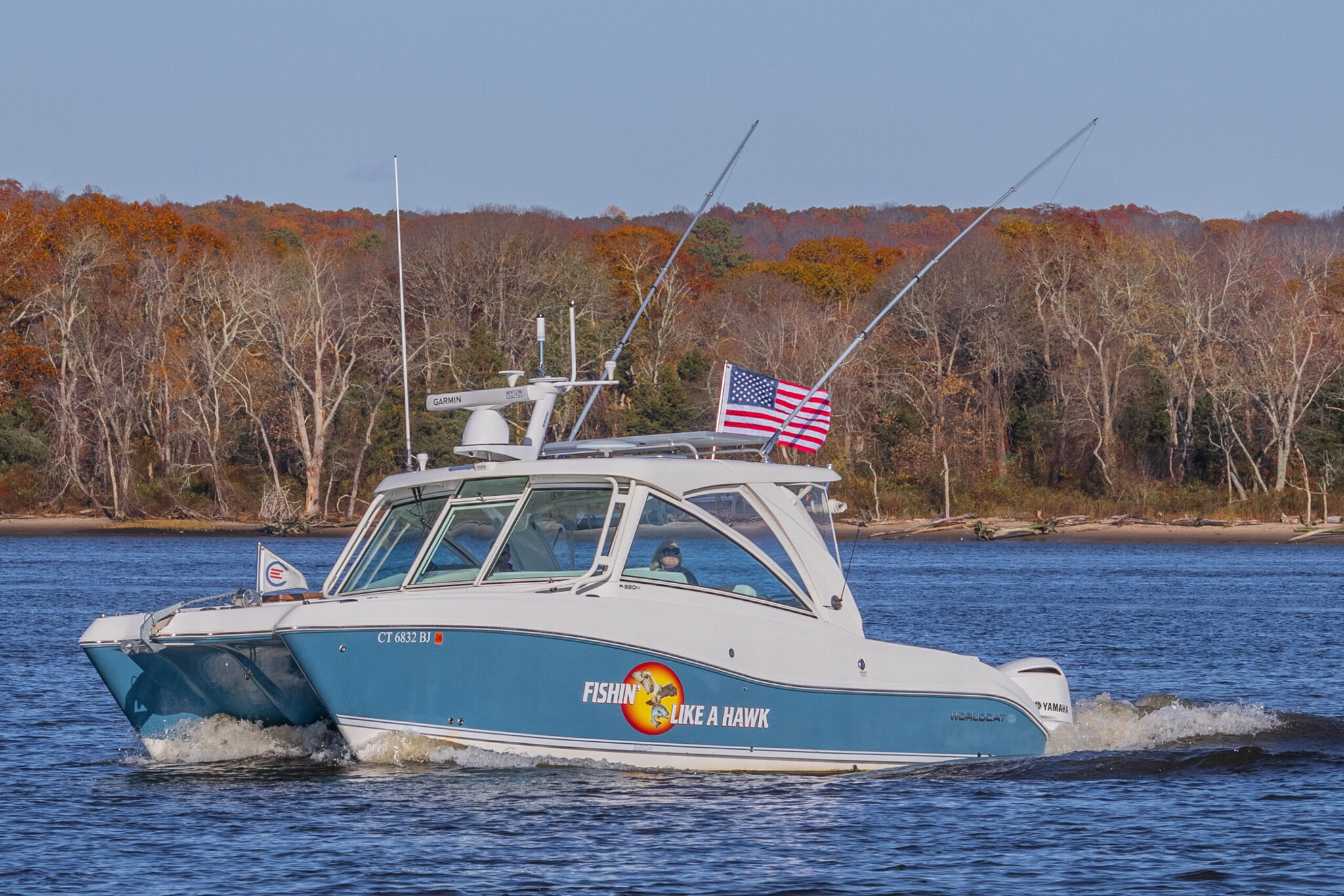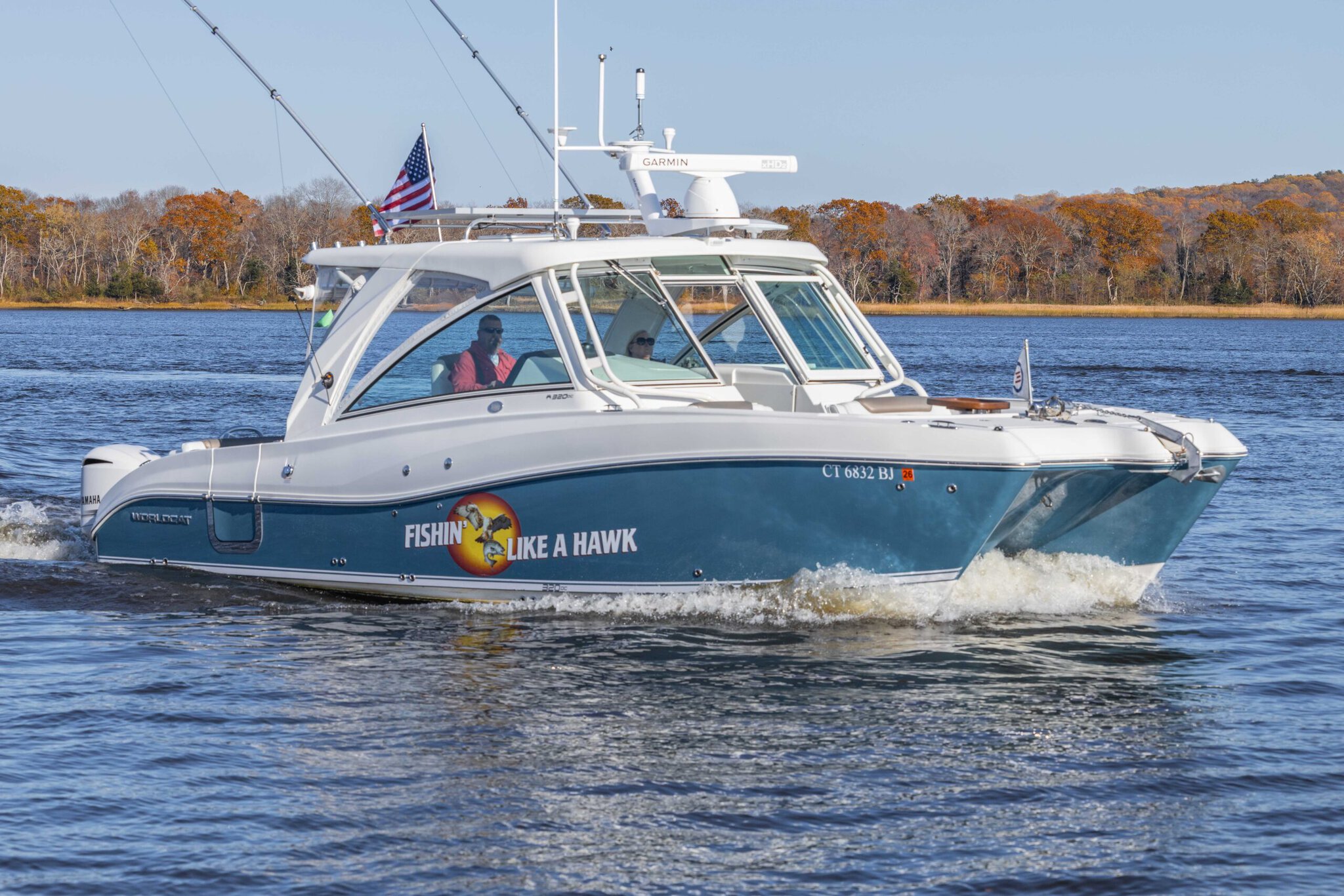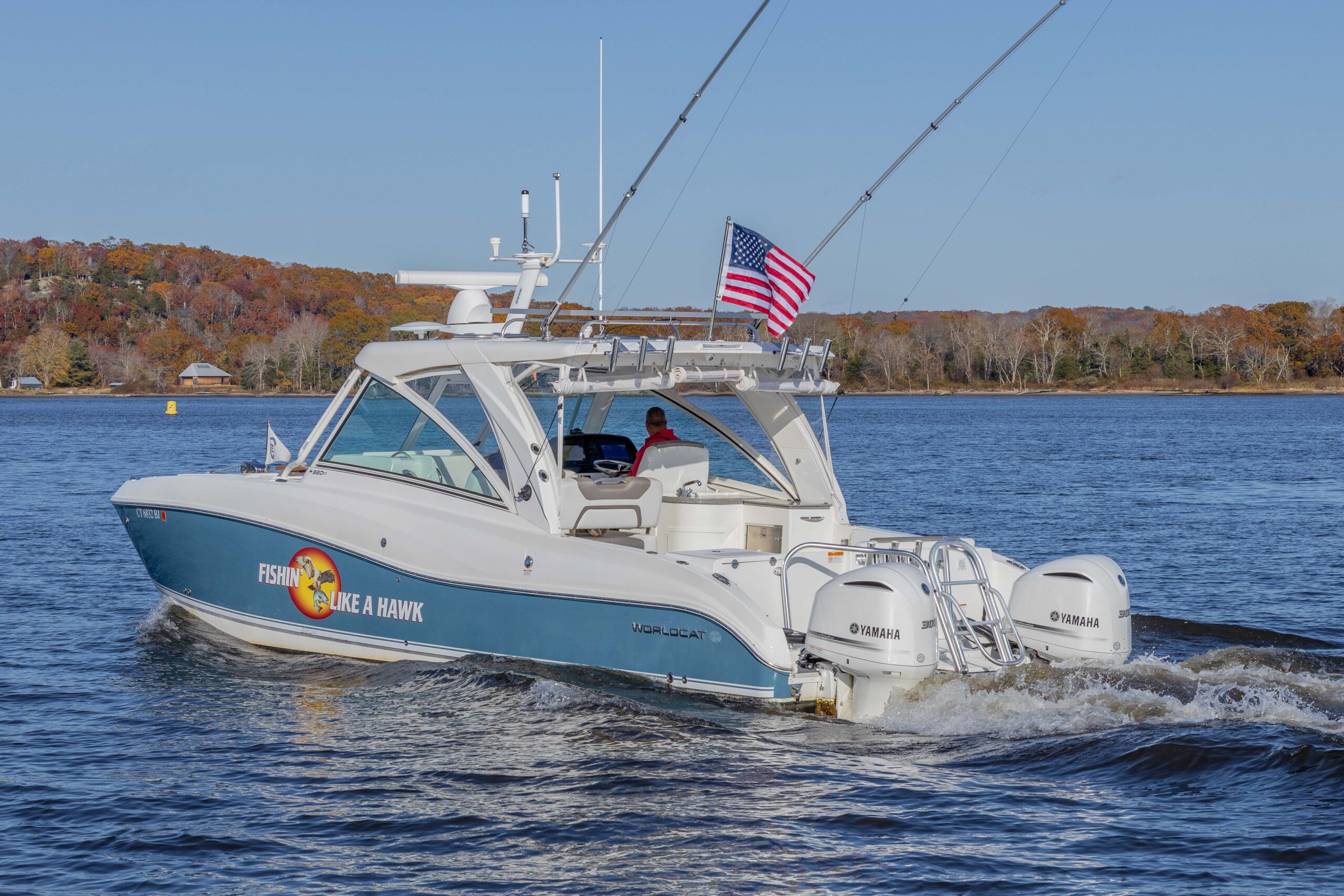 FISHIN’ LIKE A HAWK is a truly fine example of the famed World Cat 320 DC (dual console), power cat.